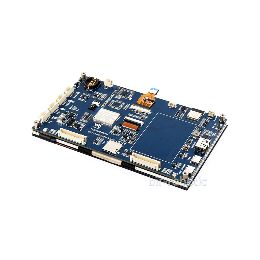 برد توسعه ESP32-P4-WIFI6 با نمایشگر لمسی 7 اینچ مدل C، یک پلتفرم قدرتمند برای رابط‌های انسان و ماشین (HMI) است که بر اساس ترکیب دو تراشه ESP32-P4 (پردازنده اصلی RISC-V) و ESP32-C6 (ارتباطات بی‌سیم) طراحی شده است. این محصول دارای یک نمایشگر 7 اینچی IPS با رزولوشن 1024 × 600 و پنل لمسی خازنی 5 نقطه‌ای است که زاویه دید وسیع 160 درجه را ارائه می‌دهد.