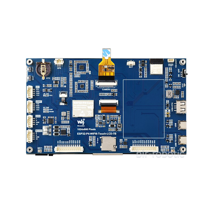 برد توسعه ESP32-P4-WIFI6 با نمایشگر 7 اینچ مبتنی بر ESP32-P4 و ESP32-C6 با رزولوشن 1024×600 و Wi-Fi 6 است. دارای حافظه 32MB، رابط‌های RS485/CAN، قابلیت پردازش تصویر H264 و دوربین OV5647 (در مدل C)، مناسب برای سیستم‌های امنیتی و کنترل صنعتی می‌باشد.