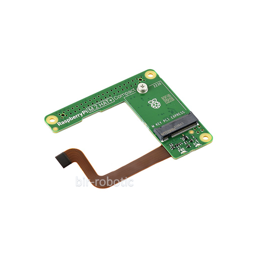 برد رسمی M.2 HAT+ رزبری پای ۵ مدل Compact، یک مبدل رسمی PCIe به M.2 است که به طور اختصاصی برای Raspberry Pi 5 طراحی شده است. این برد امکان اتصال حافظه‌های پرسرعت SSD با پروتکل NVMe (و رابط M.2 M key) را به رزبری پای فراهم می‌کند. ویژگی برجسته این مدل، طراحی فشرده (Compact) و L-شکل آن است که به طور خاص برای جاگیری در داخل کیس رسمی رزبری پای 5 طراحی شده است؛ به طوری که فضای کافی برای فن خنک‌کننده کیس باقی می‌ماند.