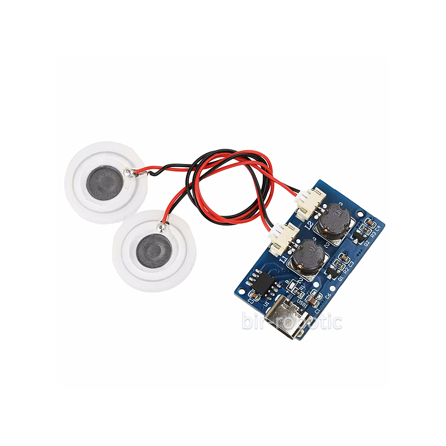ماژول بخار سرد 5 ولت با ورودی Type-C با قابلیت دو نازل (Double Spray)، راهکاری منعطف برای ایجاد رطوبت در محیطهای مختلف است. این کیت از دیسکهای اتمیزه میکرو متخلخل (Microporous) با فرکانس تشدید 108-110KHz بهره میبرد که منجر به تولید مه بسیار نرم، یکنواخت و کارآمد میشود. طراحی هوشمندانه این ماژول با ابعاد بسیار کوچک و توان مصرفی پایین (1.5-2W)، آن را برای کارکرد مداوم و ادغام در دستگاههای مختلف خانگی و صنعتی ایدهآل ساخته است. تغذیه این برد از طریق درگاه مدرن USB Type-C تأمین میشود و اتصال نازلها به برد اصلی به وسیله سوکتهای PH1.25 انجام میپذیرد که نصب را بسیار آسان و سریع میکند. این سیستم فاقد کلید فیزیکی پیچیده است و به محض تماس نازل با آب، فرآیند اسپری آغاز میشود.