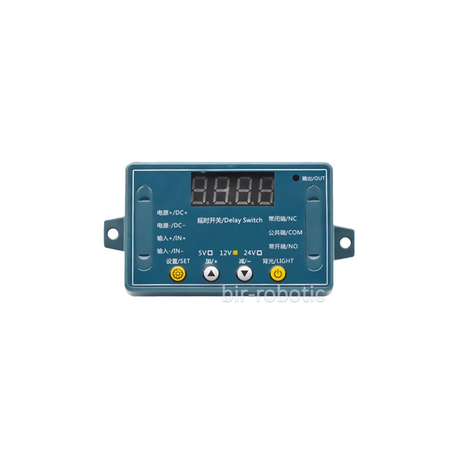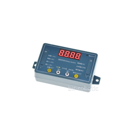 ماژول رله تایمر دیجیتال قابل تنظیم 24 ولت 10 آمپر، یک ماژول کنترل رله چندکاره با تایمر تاخیر است که با استفاده از یک میکروکنترلر به عنوان واحد کنترل اصلی، 32 عملکرد از پیش تعیین شده را ارائه می‌دهد. کاربران می‌توانند بر اساس نیازهای واقعی خود، عملکرد مورد نظر را انتخاب کنند. این ماژول برای کاربردهای کنترلی متنوعی مانند کنترل پمپ آب، موتور، نوارهای نوری و شیرهای برقی مناسب است. این دستگاه دارای دقت زمان‌بندی تا 0.01 ثانیه است و محدوده زمانی آن از حداقل 0.1 ثانیه تا حداکثر 999 دقیقه قابل تنظیم می‌باشد. یکی از ویژگی‌های مهم آن، حفاظت در برابر اتصال معکوس تغذیه است که از آسیب دیدن ماژول در صورت اتصال اشتباه جلوگیری می‌کند. همچنین، این ماژول دارای حافظه پس از قطع برق و حالت کم‌مصرف برای صرفه‌جویی در انرژی است که در این حالت می‌توان نمایشگر را خاموش کرد. خروجی رله قادر به کنترل بارهایی تا 10 آمپر در محدوده ولتاژ 30 ولت DC و تا 5 آمپر در محدوده ولتاژ 250 ولت است.